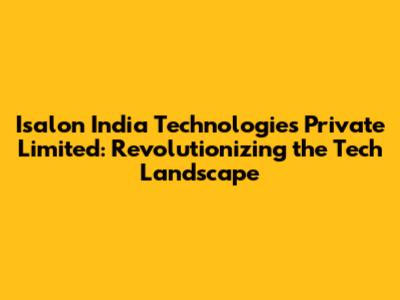 Hey guys! Ever heard of Isalon India Technologies Private Limited? If not, buckle up because you're in for a treat. In today's rapidly evolving tech world, companies like Isalon are the ones driving innovation and shaping the future. Let's dive deep into what makes Isalon India Technologies so special, its impact on the industry, and why you should keep an eye on them.