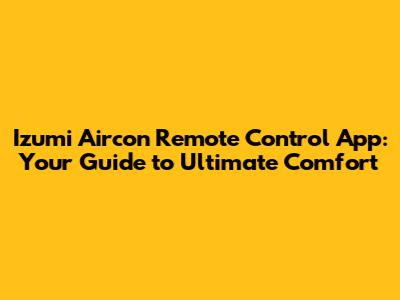 Izumi Aircon App: Your Ultimate Comfort Control