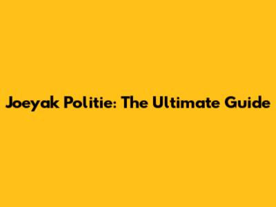 Joeyak Politie: The Ultimate Guide
