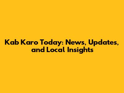 Kab Karo Today: News, Updates, And Local Insights