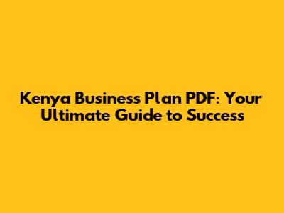 Kenya Business Plan PDF: Your Guide To Success
