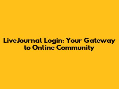 LiveJournal Login: Your Gateway To Online Community