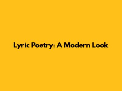 Lyric Poetry: A Modern Look