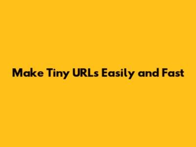 Make Tiny URLs Easily And Fast