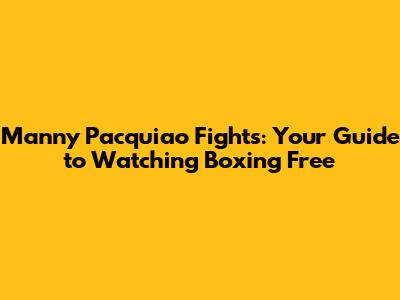 Manny Pacquiao Fights: How To Watch Free
