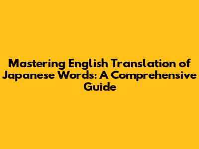 Mastering English Translation Of Japanese Words: A Comprehensive Guide