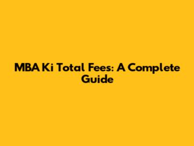 MBA Ki Total Fees: A Complete Guide