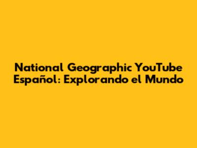 National Geographic YouTube Español: Explorando El Mundo