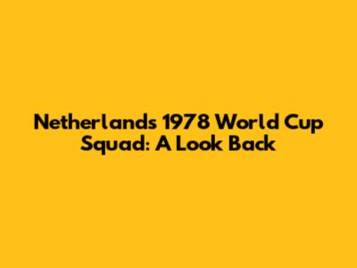 Netherlands' 1978 World Cup Squad: A Look Back