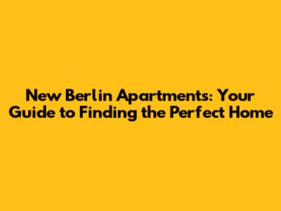 New Berlin Apartments: Your Guide To Finding The Perfect Home