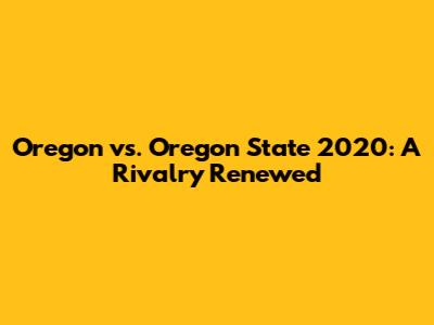 Oregon Vs. Oregon State 2020: A Rivalry Renewed