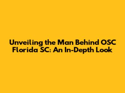 Unveiling the Man Behind OSC Florida SC: An In-Depth Look