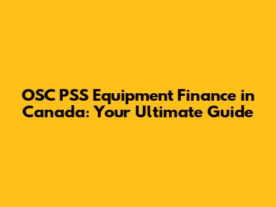 OSC PSS Equipment Finance In Canada: Your Ultimate Guide