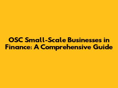 OSC Small-Scale Businesses In Finance: A Comprehensive Guide