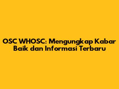 OSC WHOSC: Kabar Baik & Informasi Terbaru Untuk Anda!