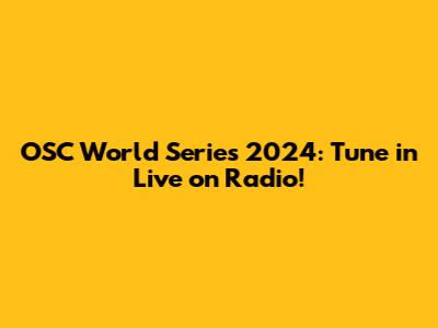 Where to Find Live Radio Coverage of the OSC World Series 2024