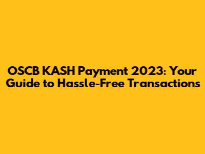 OSCB KASH Payment 2023: Your Guide To Hassle-Free Transactions