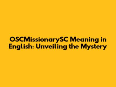 So, what could OSCMissionarySC mean when combined? Here are a few possible interpretations, keeping in mind the need for specific context: