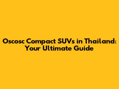 Oscosc Compact SUVs In Thailand: Your Ultimate Guide