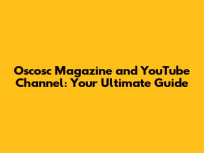 Oscosc Magazine And YouTube Channel: Your Ultimate Guide