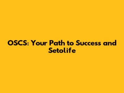 OSCS: Your Path To Success And Setolife