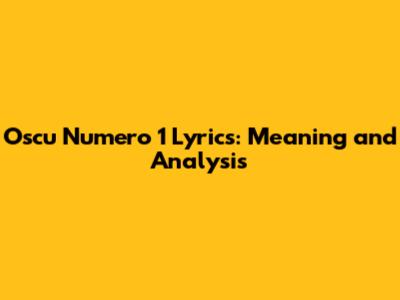 Oscu Numero 1 Lyrics: Meaning And Analysis