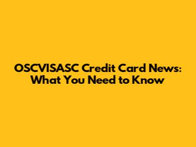 OSCVISASC Credit Card News: What You Need To Know