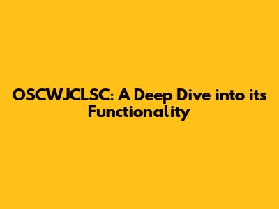 OSCWJCLSC: A Deep Dive Into Its Functionality