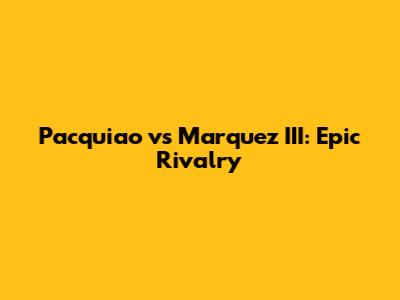 Pacquiao Vs Marquez III: Epic Rivalry