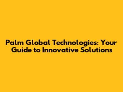 Palm Global Technologies: Your Guide To Innovative Solutions