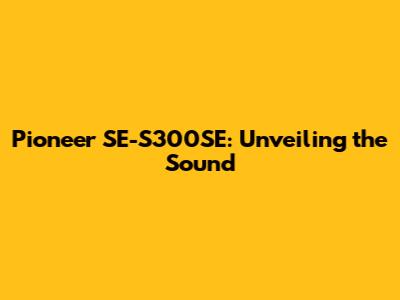 Pioneer SE-S300SE: Unveiling The Sound