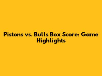 Pistons Vs. Bulls Box Score: Game Highlights