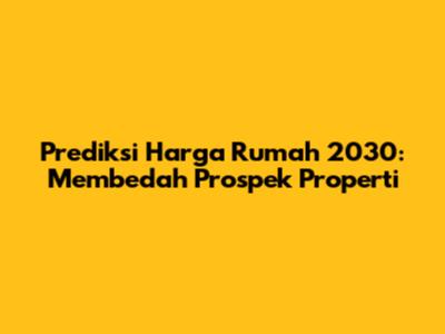 Prediksi Harga Rumah 2030: Apa Yang Perlu Diketahui?