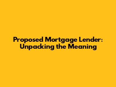 Proposed Mortgage Lender: What Does It Really Mean?