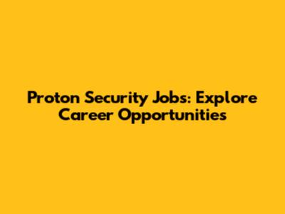 Proton Security Jobs: Explore Career Opportunities