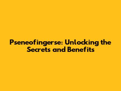 Pseneofingerse: Unlocking The Secrets And Benefits