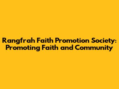 Rangfrah Faith Promotion Society: Promoting Faith And Community