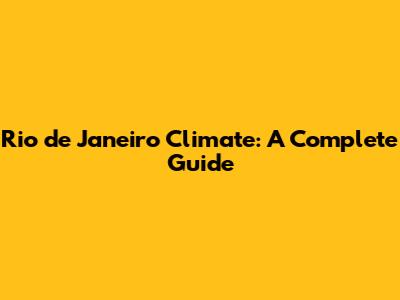 Rio De Janeiro Climate: A Complete Guide