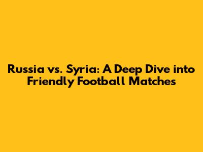 Russia Vs. Syria: A Deep Dive Into Friendly Football Matches