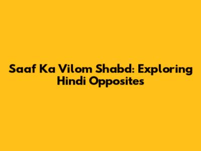 Saaf Ka Vilom Shabd: Understanding Opposites In Hindi