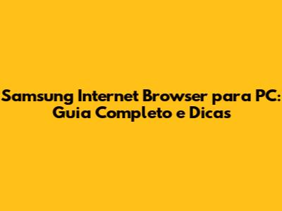 Samsung Internet Browser para PC é uma excelente alternativa para quem busca uma experiência de navegação rápida, segura e com diversas funcionalidades. Se você está pensando em experimentar, ou já utiliza o navegador no seu smartphone e quer saber mais sobre a versão para PC, este guia completo é para você. Vamos explorar tudo sobre o Samsung Internet Browser para PC, desde como baixar e instalar, até as suas principais características, dicas de uso e como tirar o máximo proveito dele. Então, prepare-se para mergulhar no mundo da navegação otimizada e descobrir por que o Samsung Internet Browser para PC pode ser a escolha ideal para você, afinal, este navegador oferece uma experiência única e diferenciada, que pode transformar a sua forma de navegar na internet. Vamos lá, galera!