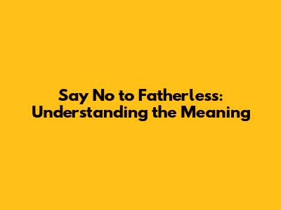 Say No To Fatherless: Understanding The Meaning