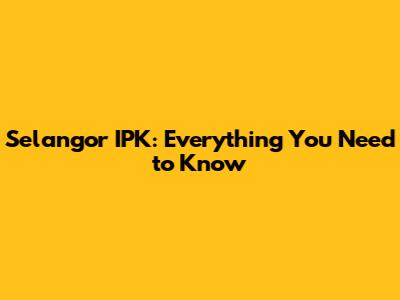 Selangor IPK: Everything You Need To Know