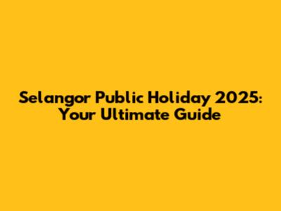 Selangor Public Holiday 2025: Your Ultimate Guide