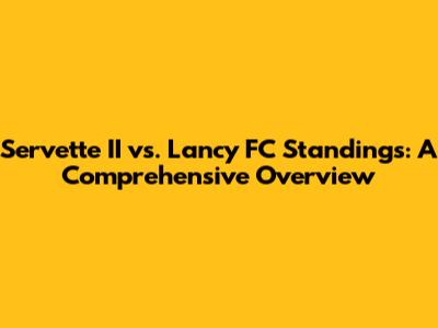 Hey guys! Let's dive deep into the Servette II vs. Lancy FC standings. This article will break down everything you need to know about the teams' performances, match results, and overall league positions. We'll cover their recent matches, analyze their strengths and weaknesses, and give you a clear picture of where they stand in the competition. So, buckle up, because we're about to explore the fascinating world of football standings and what they mean for Servette II and Lancy FC!