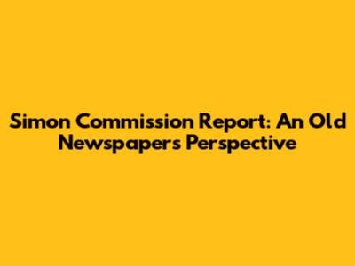 Simon Commission Report: An Old Newspaper's Perspective