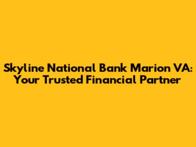 Hey everyone, let's dive into Skyline National Bank in Marion, VA, your friendly neighborhood financial institution! We're going to explore what makes Skyline National Bank a great choice for your banking needs, from the services they offer to how they support the local community. So, grab a coffee, and let's get started. Skyline National Bank in Marion, VA, isn't just a bank; it's a place where your financial well-being is genuinely valued. They offer a comprehensive suite of banking services, ensuring they can cater to diverse financial needs. Whether you're looking for a simple checking account, a savings account to help you reach your goals, or more complex financial products, they've got you covered. One of the standout features of Skyline National Bank is its commitment to personalized customer service. Unlike some of the larger, impersonal banks, Skyline National Bank prides itself on building relationships with its customers. This means you can expect friendly, knowledgeable staff who are always ready to help you navigate your financial journey. They're not just there to process transactions; they're there to offer guidance, answer your questions, and provide tailored solutions to help you succeed. They take pride in understanding your unique situation and providing the support you need to achieve your financial aspirations. From everyday banking to more complex financial planning, they have the expertise and resources to help you every step of the way. With a focus on customer satisfaction, they are dedicated to providing a seamless and stress-free banking experience.
