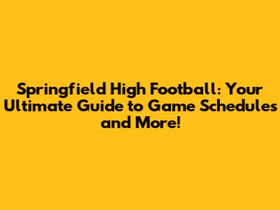 Springfield High Football: Game Schedules & More!