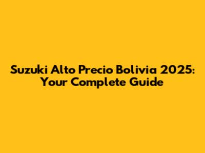 Suzuki Alto Bolivia 2025: Prices, Specs & More!
