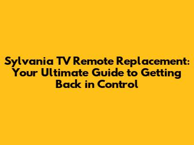 Sylvania TV Remote Replacement: Your Ultimate Guide
